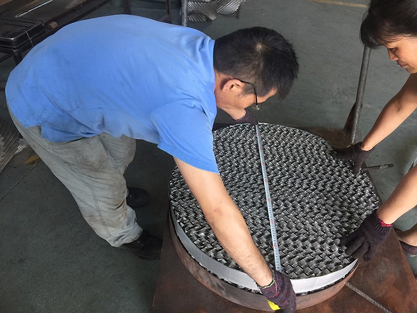 2018我司質量檢測人員對孔板波紋填料進行檢測